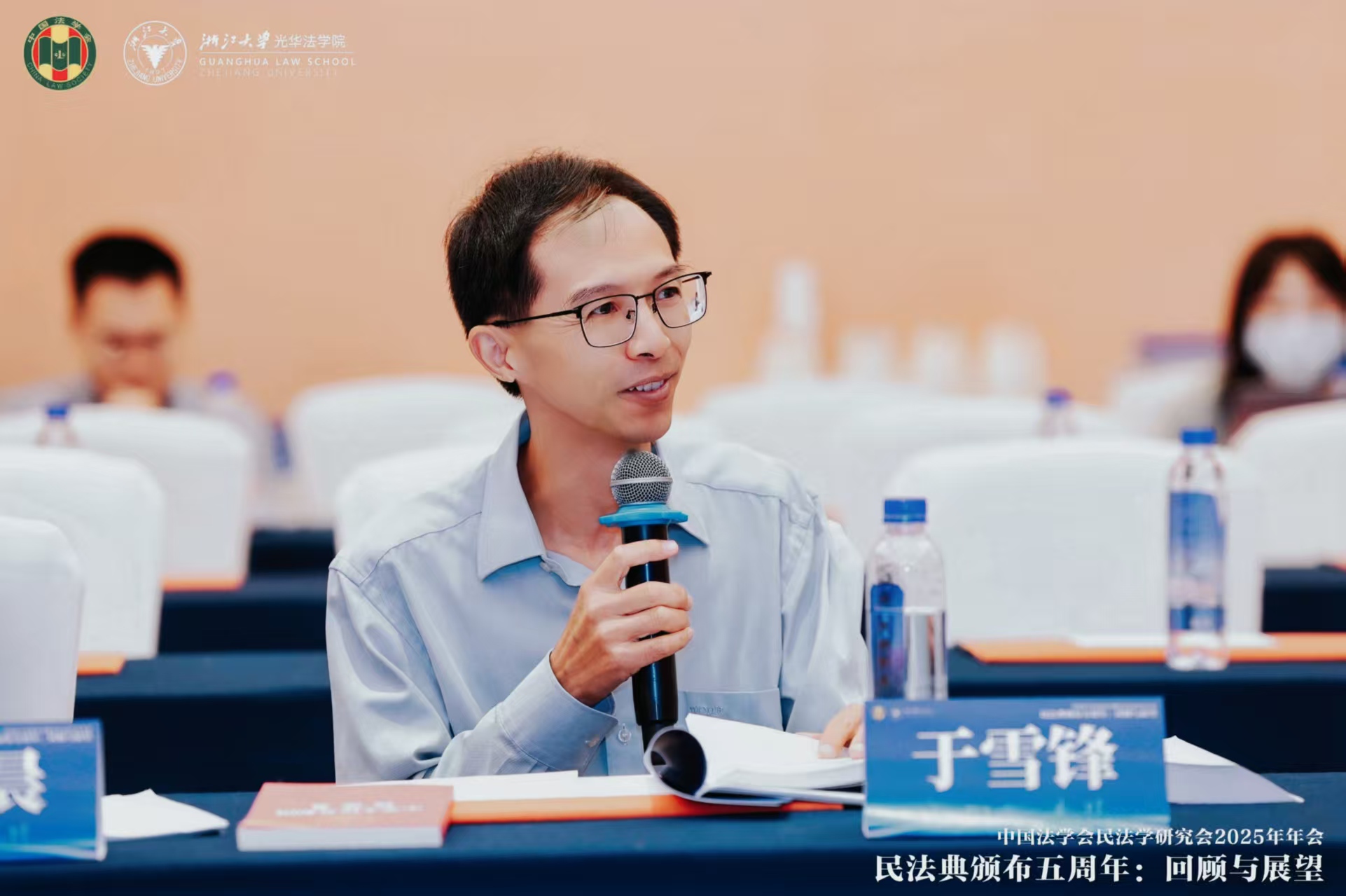 2025年10月18日至19日,中国法学会民法学研究会2025年年会在杭州召开。来自全国民法学界的专家学者及法律实务部门人士500多人参会。会议研讨主题是“民法典颁布五周年:回顾与展望”。我院于雪锋副教授、朱晶晶副教授、刘媛媛博士与程海玲博士应邀参加会议。朱晶晶副教授和程海玲博士在分会场各自就“效力瑕疵合同的返还与损害赔偿”及“个人信息权益风险性损害”主题进行了报告。于雪锋副教授在分会场对“《民法典》侵权责任编...