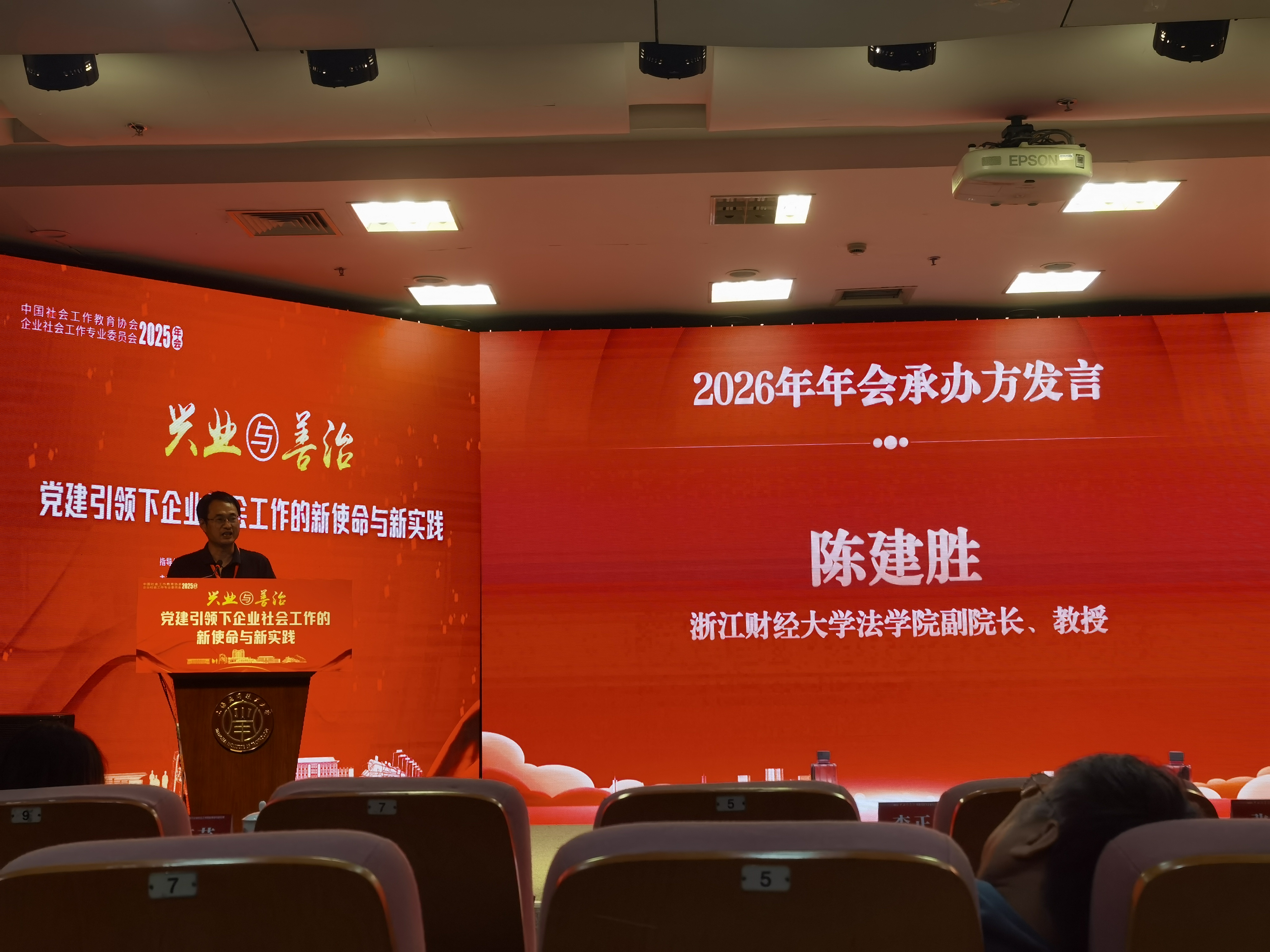 东方学院院长、法学院MSW教育中心主任童志锋教授和我院副院长陈建胜教授受邀参加本次大会。童志锋教授在会议上从服务模式、实践经验角度,分享了新就业群体社会工作的探索成果。陈建胜教授作为2026年年会承办方代表发言,介绍了筹备规划,表达了办好下一届年会的信心与决心。