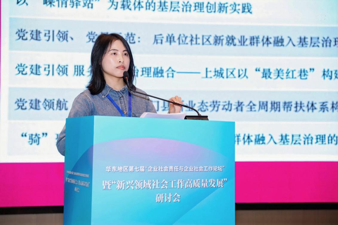 浙江财经大学法学院社会工作系副主任胡梦茵对此次论坛做了总结发言,会议围绕新兴领域社会工作高质量发展展开研讨,以“三个凝聚”总结成果:凝聚对“三新”领域社会工作发展的战略共识,凝聚多元视角下破解实践难题的决心,凝聚跨界协同、面向未来的行动合力。会议最后发出三点倡议,呼吁立足本土实践构建理论体系、探索可复制的服务模式、深化跨学科跨区域合作,推动新兴领域社会工作发展。