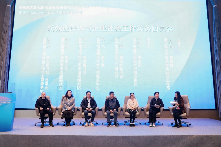 浙江财经大学法学院社会工作系副教授聂玉梅主持“新就业群体与企业社会工作实务”圆桌会。
