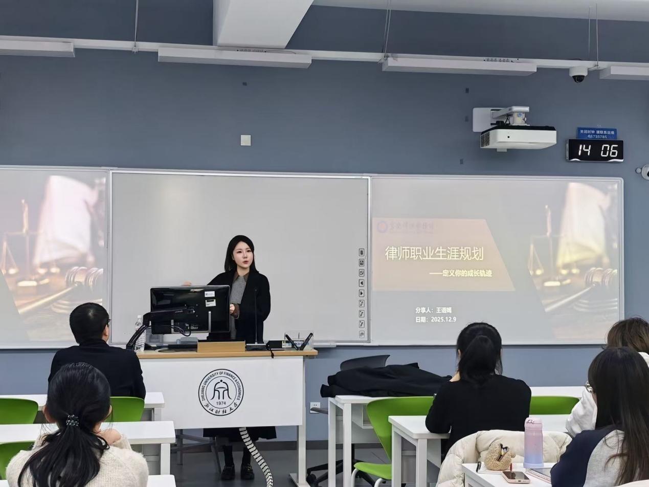 2025年12月9日下午,我院25MAQ班第一期“笃行职业规划讲座”在A108教室顺利举行。本次活动由该班班主任钱炜江老师主持,并邀请浙江京衡律师事务所高级合伙人王语嫣律师担任主讲。
