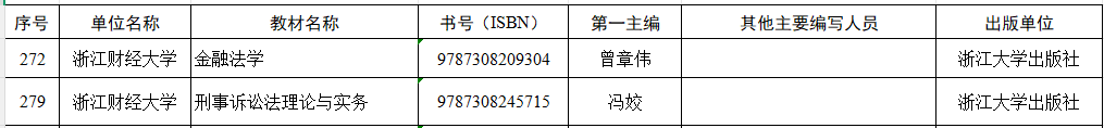 近日,浙江省教育厅办公室公布了浙江省普通高等教育本科规划教材目录(浙教办函〔2026〕30号),我院冯姣教授主编的《刑事诉讼法理论与实务》、曾章伟副教授主编的《金融法学》共2本教材入选。