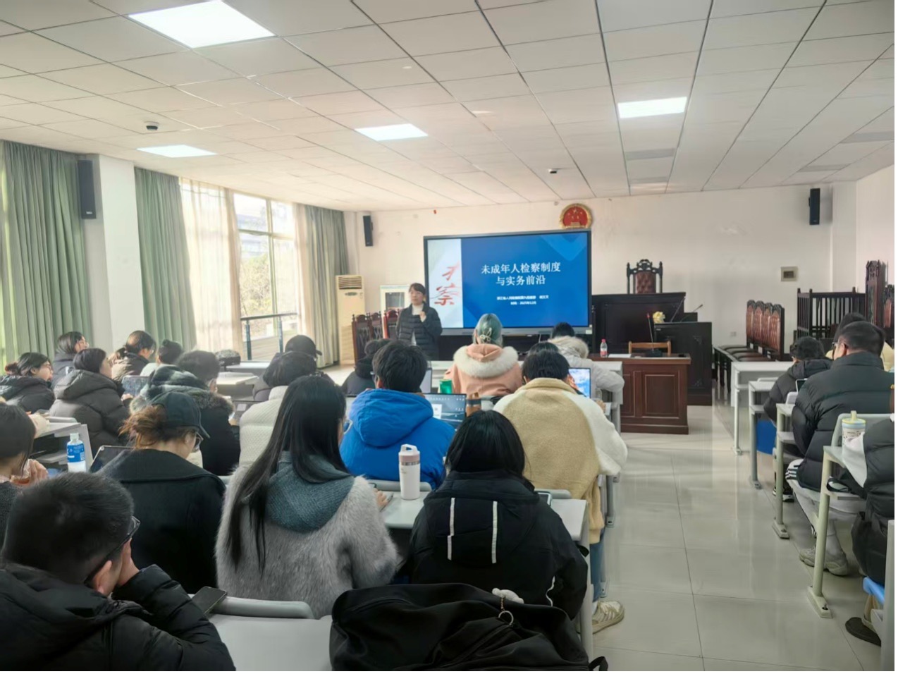 第十三讲由浙江省人民检察院第九检察部胡又文检察官主讲“未成年人检察制度与实务前沿”。课程从未检制度的基础理论入手,逐步展开未成年人四大检察核心业务、工作机制与实践应用,并探讨未检工作面临的新问题与新探索。内容层层深入,理论与案例并重,赢得同学们的阵阵掌声。