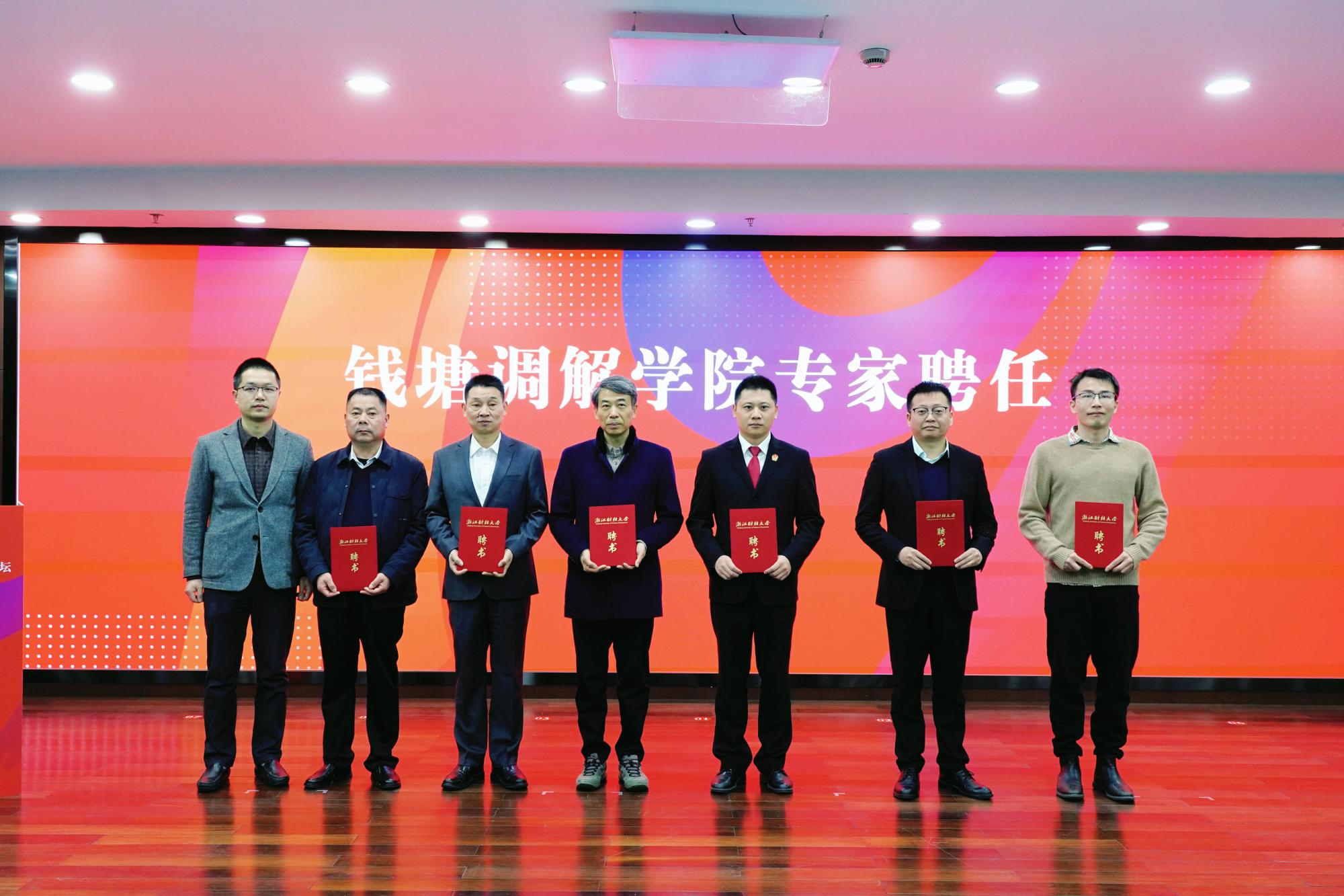 唐勇为钱塘调解学院首批聘任的6位专家颁发聘书。