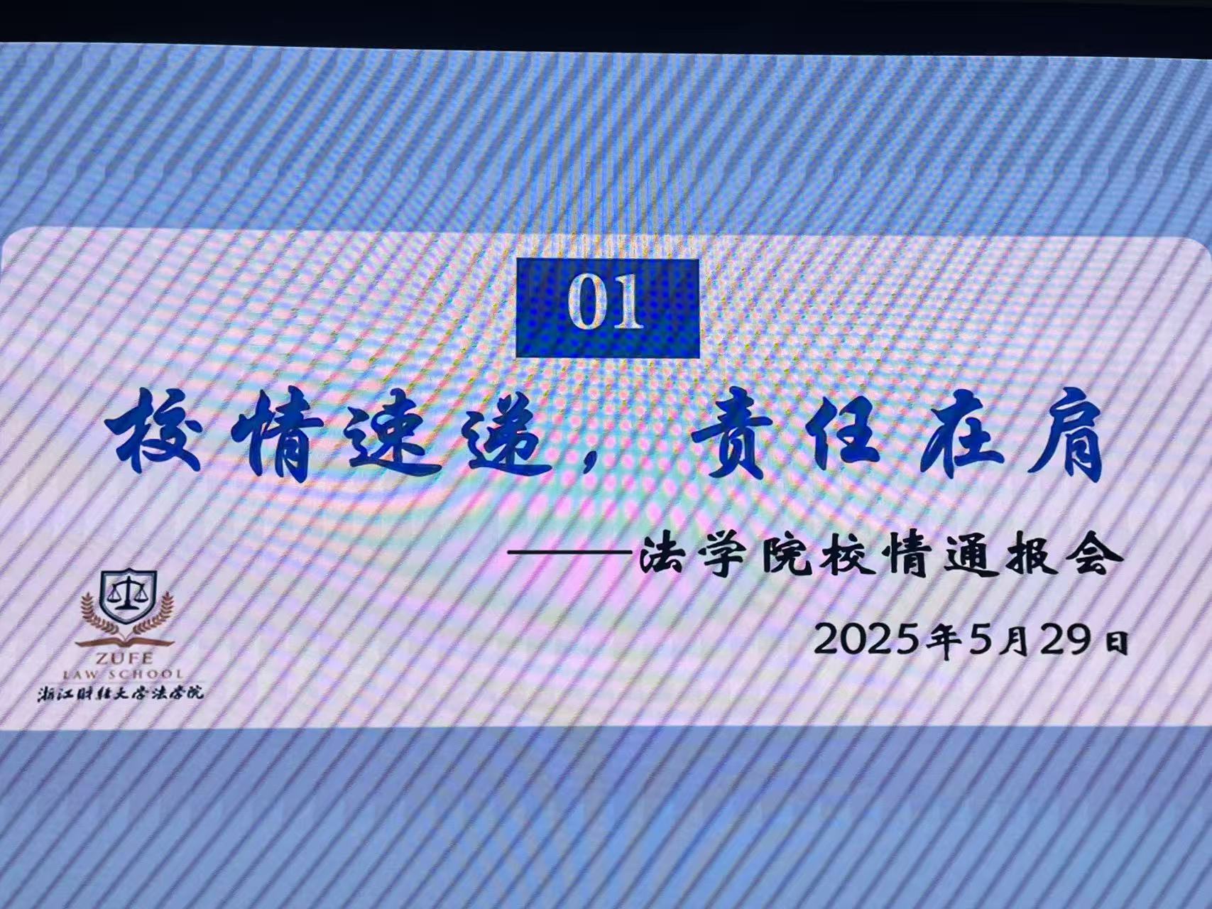 5月29日,法学院团委学生会总结大会在法学院101举行。参加本次总结大会的评委有:法学院团委书记奚旖旎老师,团委副书记方科喻,团委副书记王汉腾,团委副书记朱晓彤,学生会主席王秉秀,学生会主席周若彬。本次总结大会意在促进团委学生会各部门之间的交流,为下一学年的学生会工作做好准备,同时根据现场评分结果表彰3个优秀部门、3个优秀部门负责人。