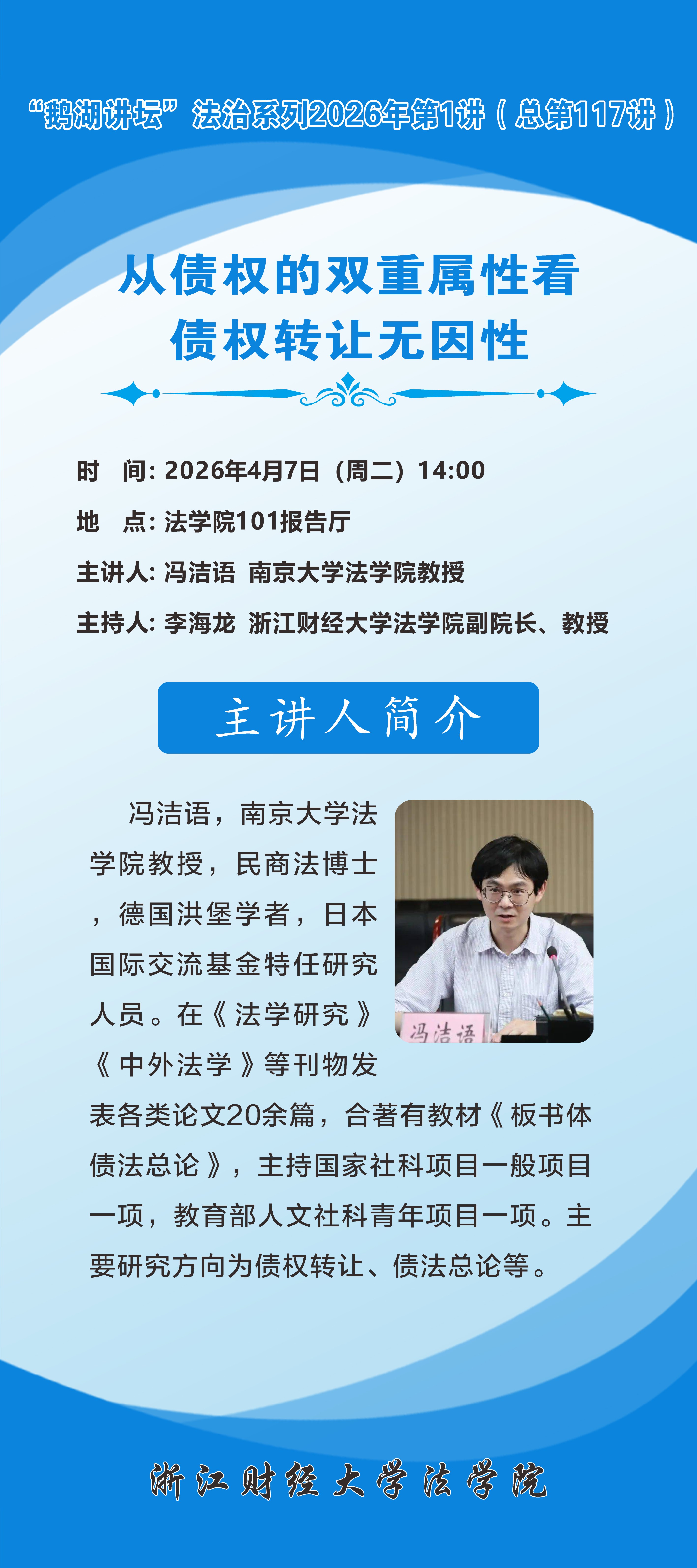 “鹅湖讲坛”法治系列2026年第1讲(总第117讲)南京大学冯洁语教授
