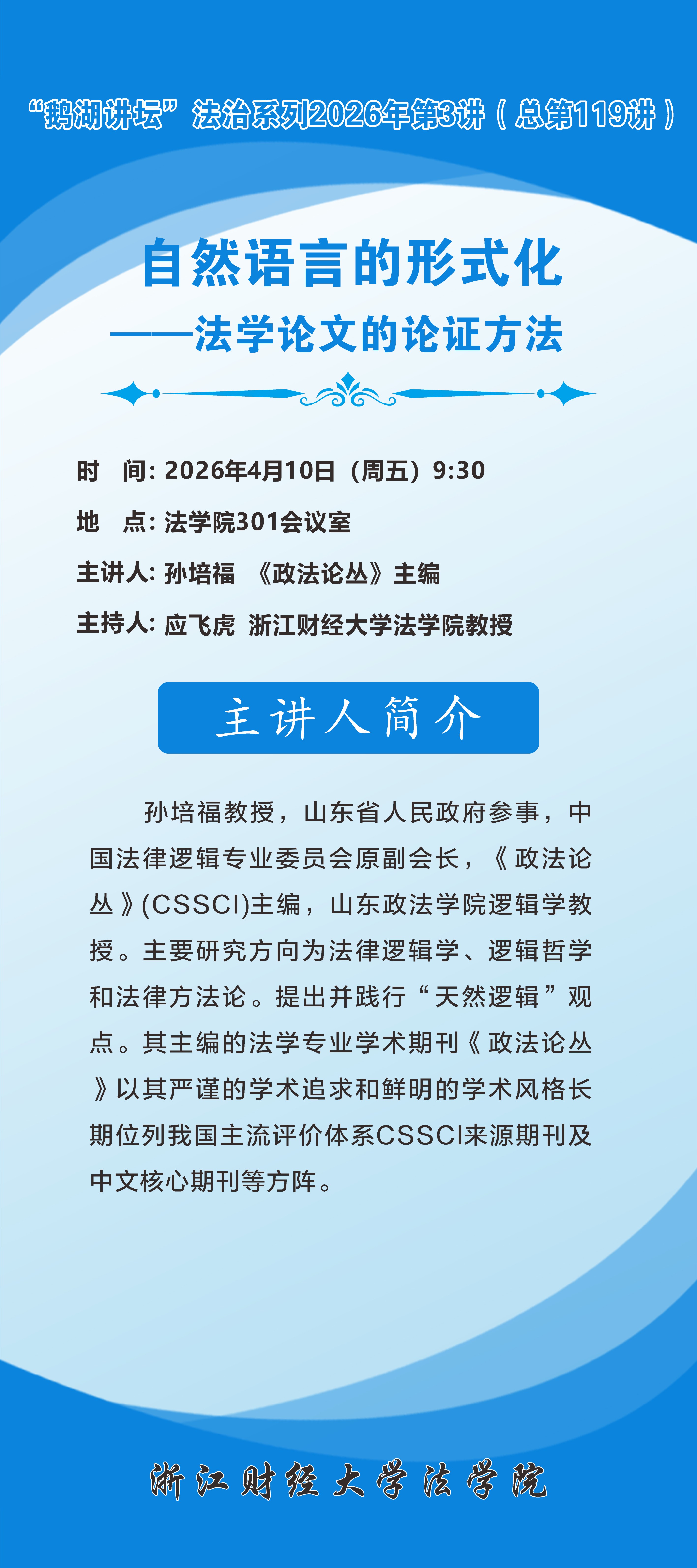 上一条:“鹅湖讲坛”法治系列2026年第4讲(总第120讲)浙江大学夏立安教授