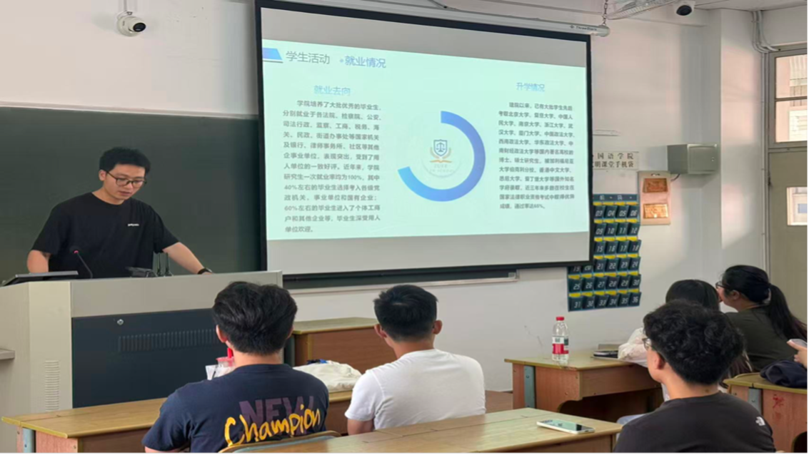 为扩大研究生招生宣传影响力,吸引更多优质生源,浙江财经大学法学院于2025年9月组织招生宣讲团,先后赴浙江农林大学、中国计量大学及浙江财经大学东方学院开展系列研究生招生宣讲活动。在浙江农林大学,宣讲团于9月25日下午开展了首场招生宣讲活动。本次活动由研究生秘书封海峰老师带队,研会负责人张梦迪、浙江农林大学优秀毕业生夏童同学及在读研究生张宇航同学共同参与。封海峰老师系统介绍了法学院的办学特色、师资力量、...