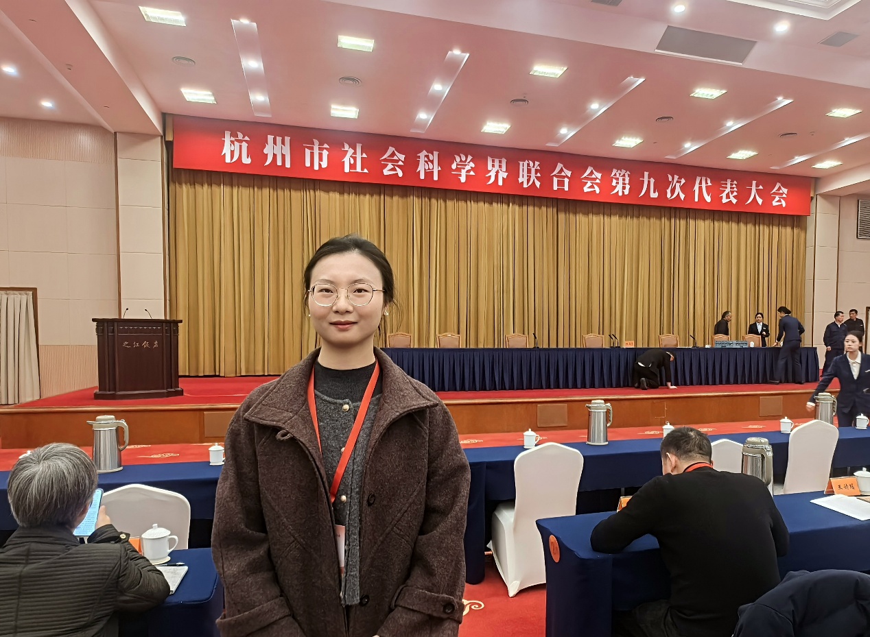 2026年1月7日,杭州市社会科学界联合会第九次代表大会在之江饭店隆重召开。省委常委、市委书记刘非出席并讲话,市委副书记、市长姚高员作经济社会发展形势报告,市人大常委会主任暨军民、市政协主席马卫光、市委副书记马小秋出席。会议听取了市委主要领导的重要讲话、市政府主要领导作经济社会发展形势报告;审议通过市社科联第八届理事会工作报告;修改市社科联章程;选举产生市社科联第九届理事会和领导班子。我院朱晶晶老师...