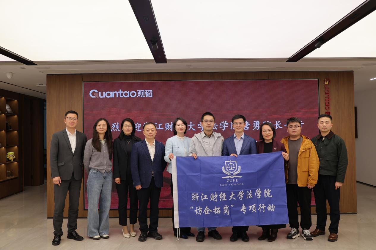 4月7日,浙江财经大学法学院院长唐勇带队赴北京观韬(杭州)律师事务所开展访企拓岗专项交流。观韬杭州办公室决策委员会主任麻侃、执委会主任何丽青、执行合伙人杨晓峰、周源及合伙人范晶晶等热情接待。座谈会上,唐勇院长介绍了法学院在学科建设、人才培养等方面的新进展。学院拥有法学和社会工作两个国家级一流本科专业建设点,以及浙江省首批涉外法治人才协同培养创新基地。目前,学院正深入推进学校“一生一方案”人才培养...